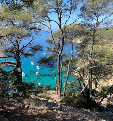 Entourée de pins et de végétation méditerranéenne, la calanque est accessible via des sentiers pittoresques. C'est un véritable havre de paix, apprécié par les amoureux de la nature et ceux cherchant à s'évader dans un cadre sauvage et serein.