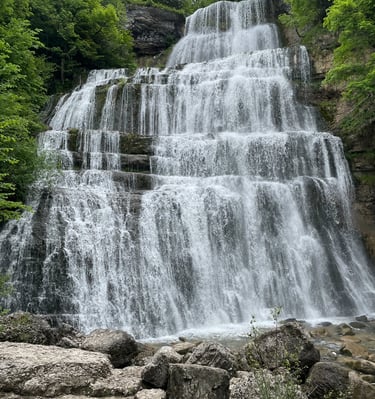 La cascade de l'Éventail est l'une des plus célèbres cascades de la région du Jura, en France. Située dans la vallée du Hérisson, elle fait partie d'un ensemble de cascades et de torrents qui forment le site des Cascades du Hérisson, un lieu naturel remarquable et très prisé par les amateurs de randonnées et de paysages naturels.