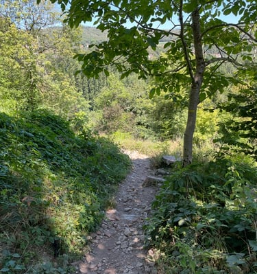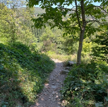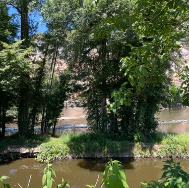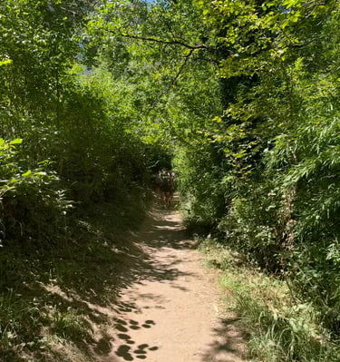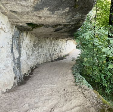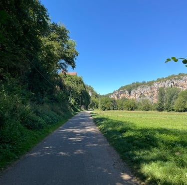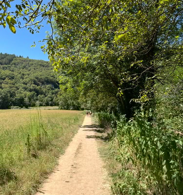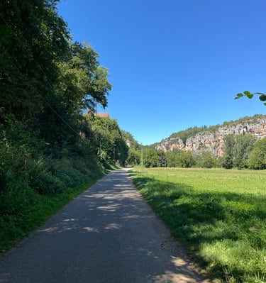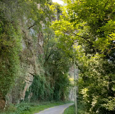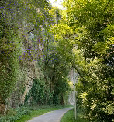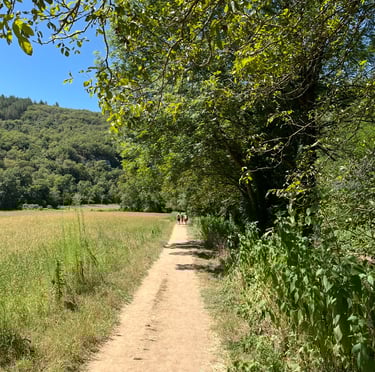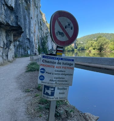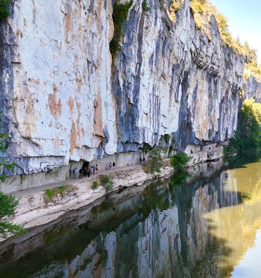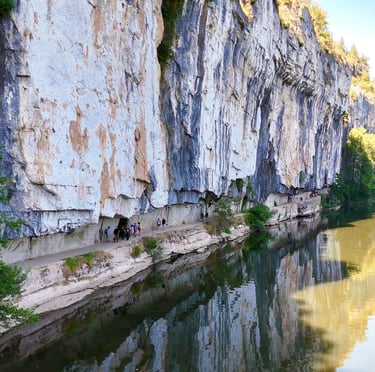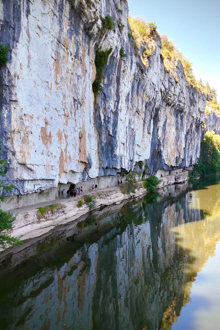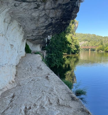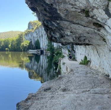 Le chemin de halage dans le Lot est un sentier pittoresque qui longe la rivière Lot, entre Bouziès et Saint-Cirq-Lapopie. Sculpté dans la falaise calcaire, il offre des vues magnifiques sur les méandres de la rivière et les falaises environnantes. Ce sentier historique, autrefois utilisé pour tirer les bateaux, est aujourd'hui un lieu de promenade tranquille, parfait pour les randonneurs et les cyclistes, au cœur d'une nature préservée.