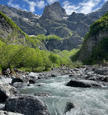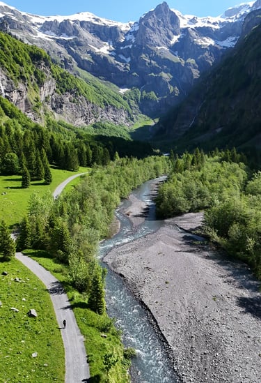 Le Cirque de Sixt-Fer-à-Cheval, situé en Haute-Savoie, est un amphithéâtre naturel spectaculaire formé par des falaises calcaires imposantes, culminant à plus de 2 000 mètres d'altitude. Il est l'un des plus grands cirques montagneux des Alpes et offre un paysage époustouflant, avec ses parois abruptes et ses cascades majestueuses, dont certaines atteignent plus de 80 mètres de hauteur.